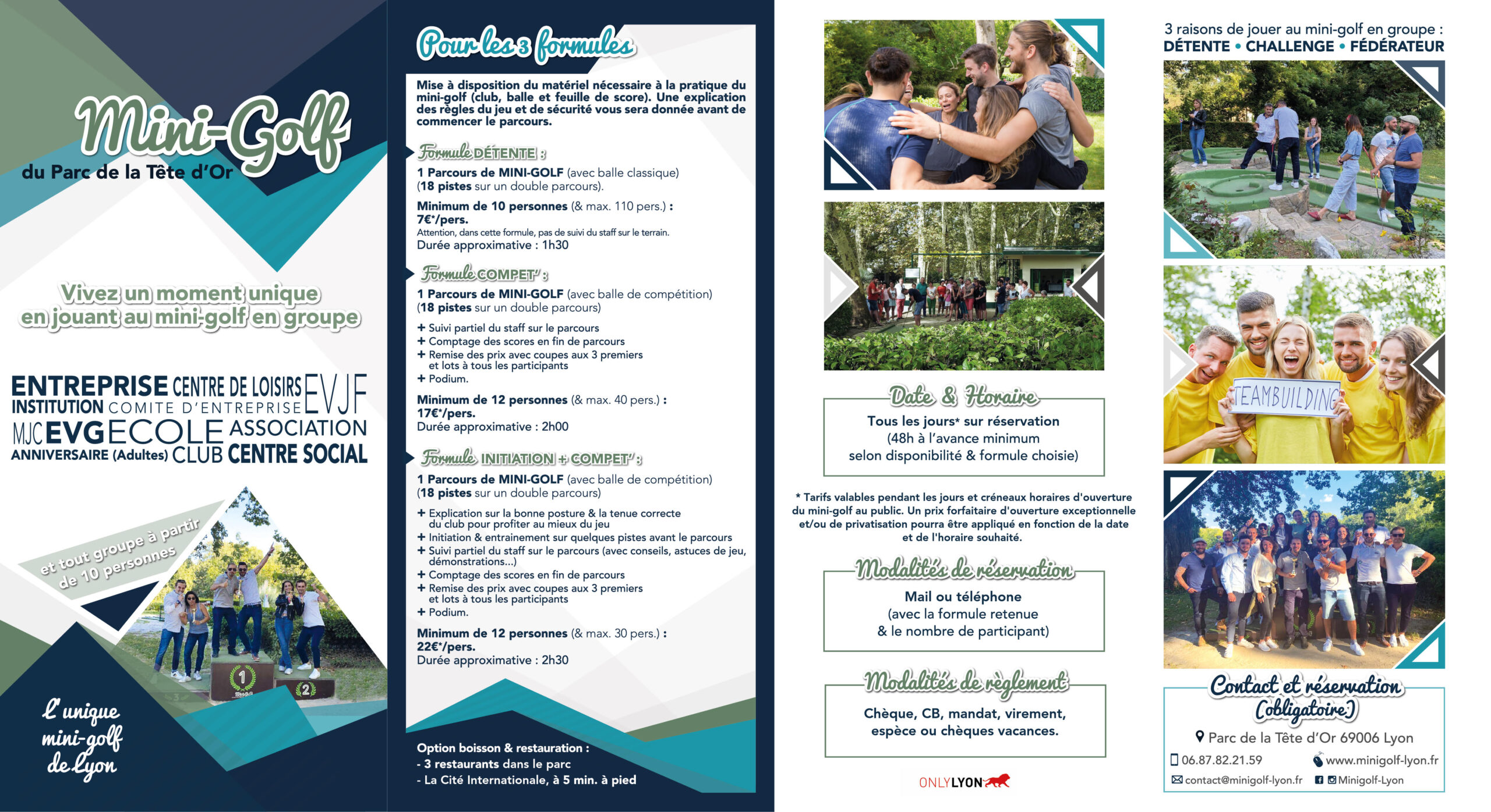 * Prices are valid during the days and times when the mini-golf course is open to the public. A fixed price for exceptional opening and/or privatisation may be applied depending on the date and time required.